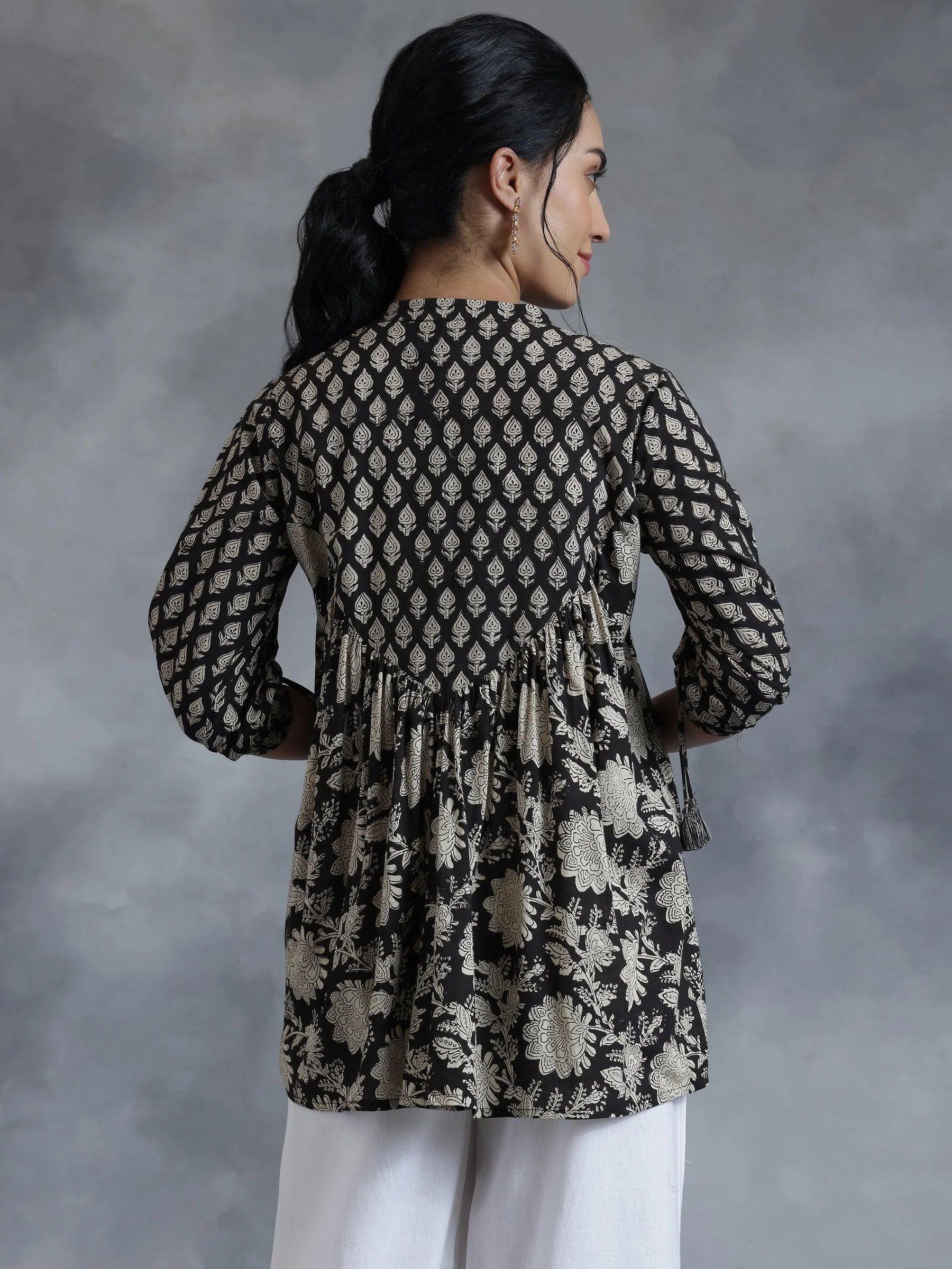 Black Printed Cotton A-Line Kurti