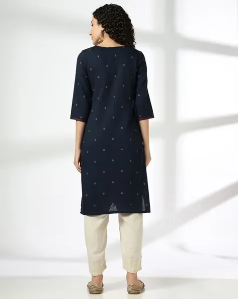 Women Zig-Zag Cross Stitch Embroidered Straight Kurta